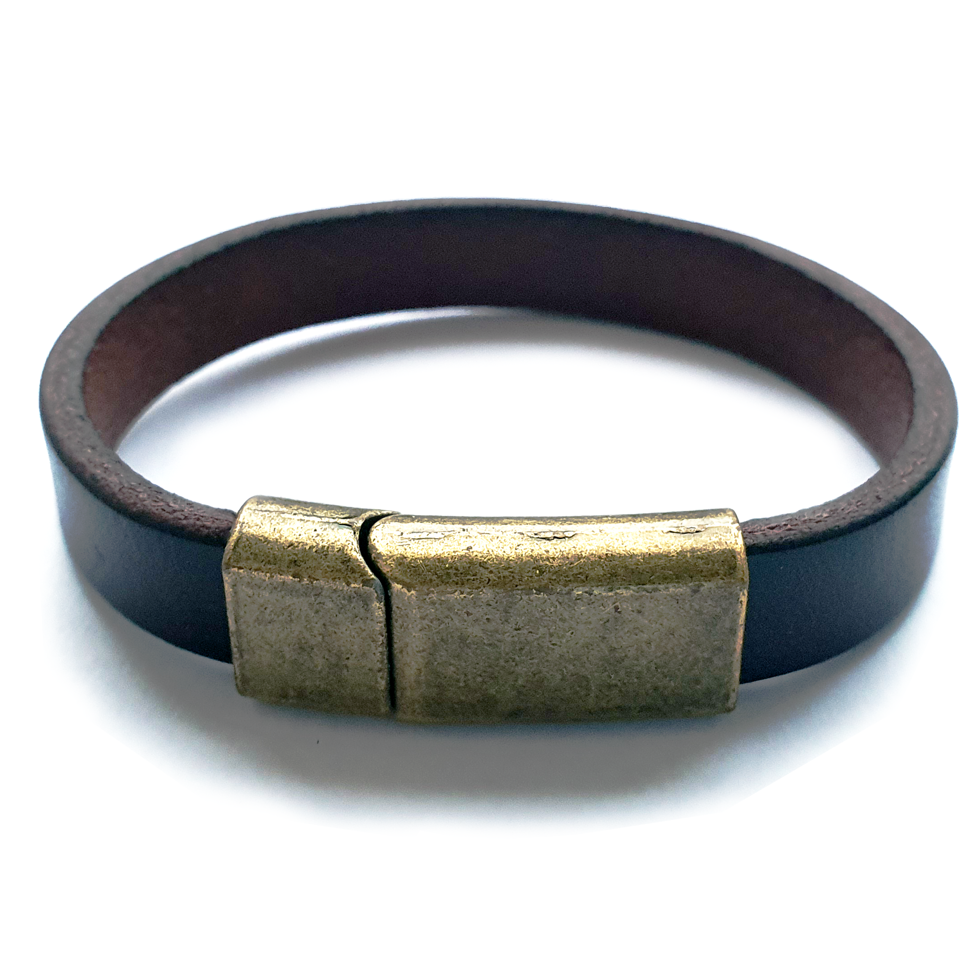 De Amphion armband is een zeer fraaie handgemaakte armband. De 11mm brede leren band komt uit op een betrouwbare magneetsluiting gemaakt van titanium met een stoere antiek bronzen afwerking.