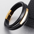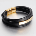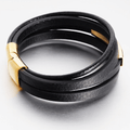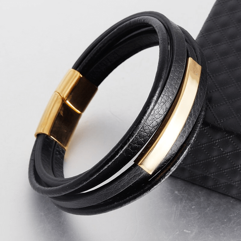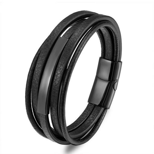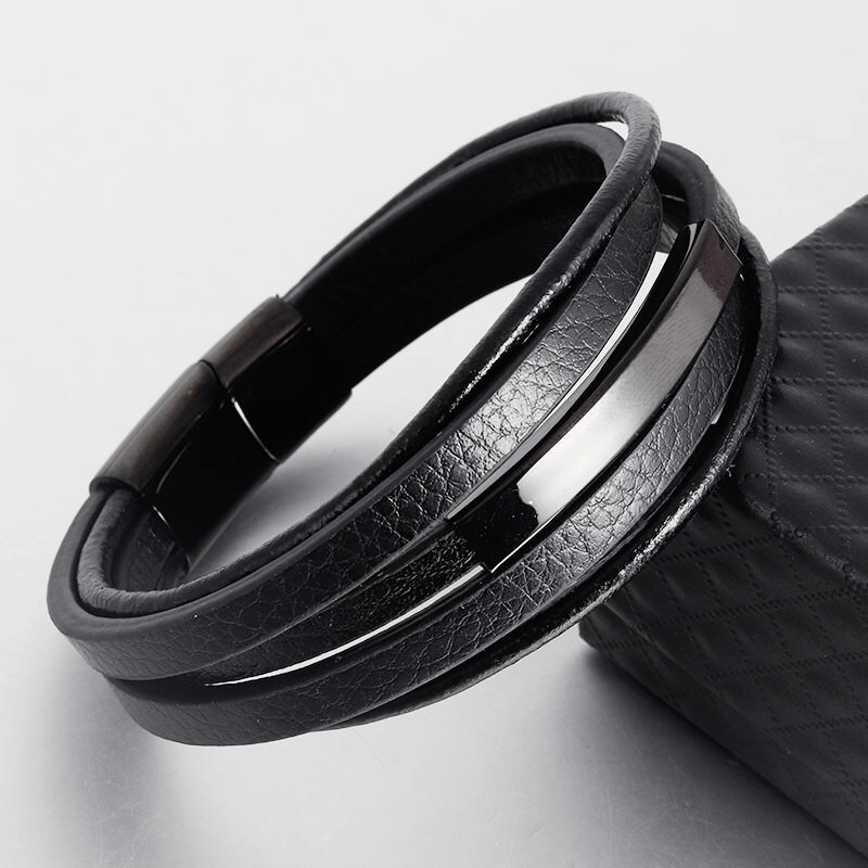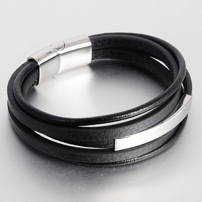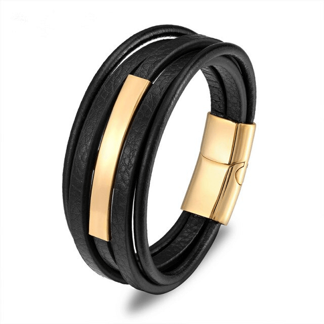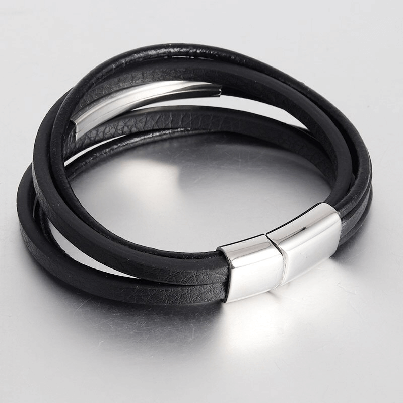 De armband bestaat uit 5 lederen banden waarvan de middelste band in het midden omhuld is met staal. De banden komen samen uit op één solide magnetische sluiting die eveneens gemaakt is van hoogwaardig staal dat niet roest of verkleurd.