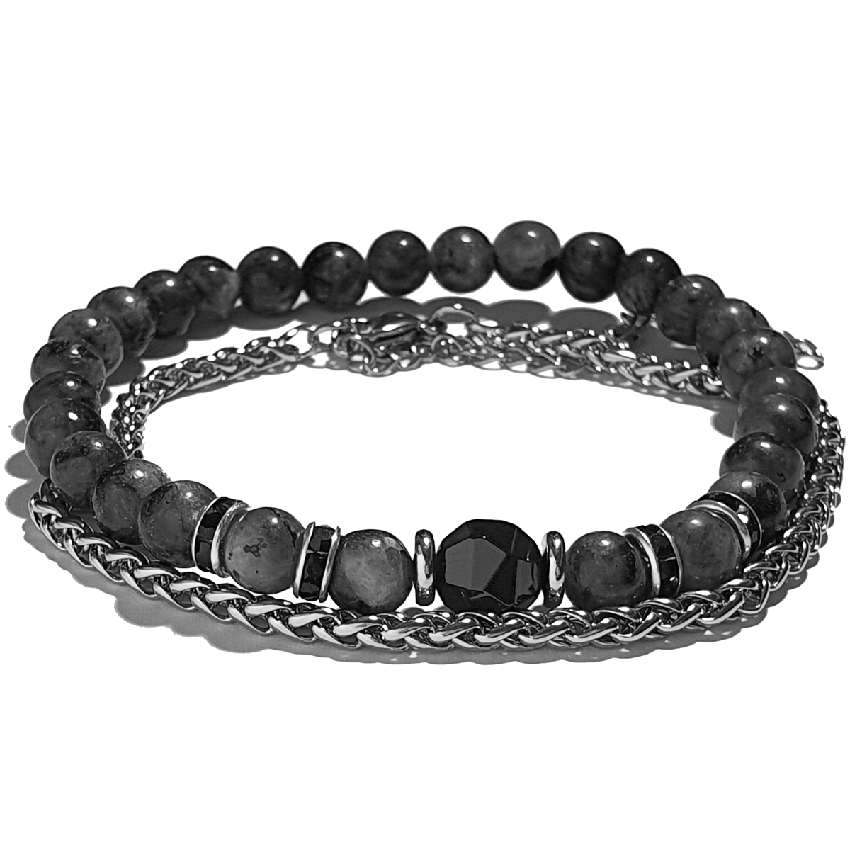 Doordat de stalen armband verstelbaar is in lengte en de kralenarmband elastisch is, is de Garilius armbanden set geschikt voor elke polsdikte.