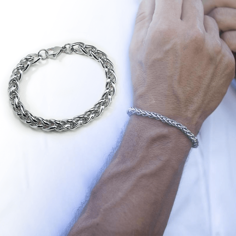 Het gepolijste staal in combinatie met de eigenwijze 8mm schakels geven de armband een stoere en toch chique uitstraling.