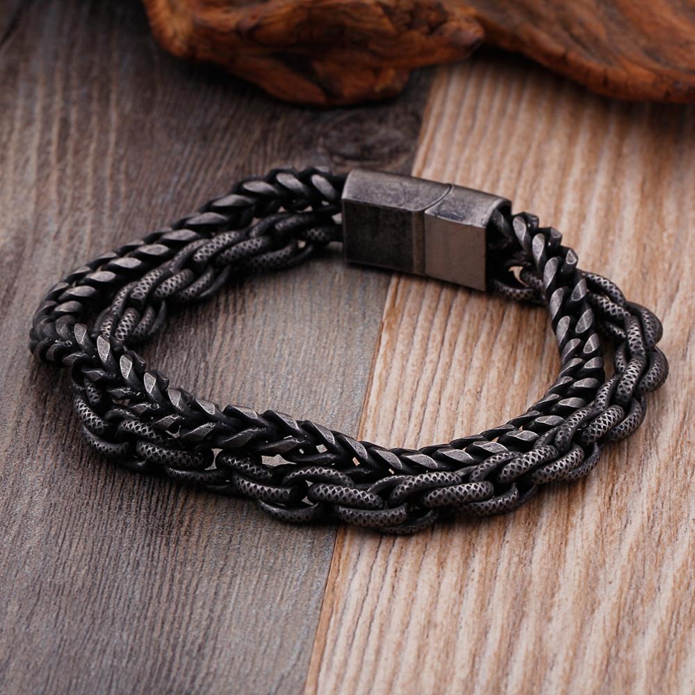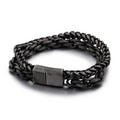 Het is een unieke armband met twee op verschillende manier gevlochten stalen banden die samen uitkomen op een betrouwbare magneetsluiting.